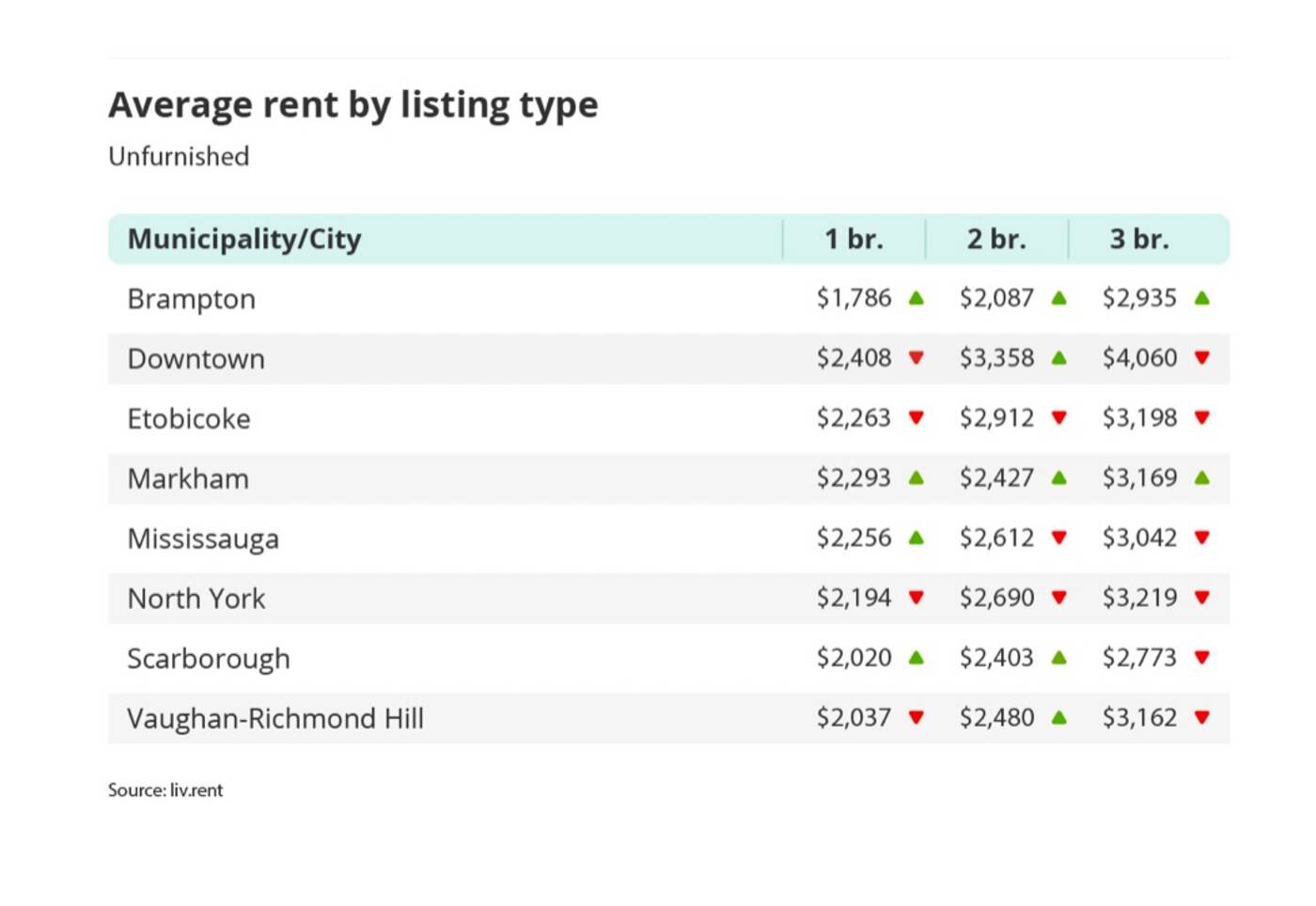 When looking at the GTA as a whole, the average monthly rent for an unfurnished bedroom unit has increased by $441 since this time last year.